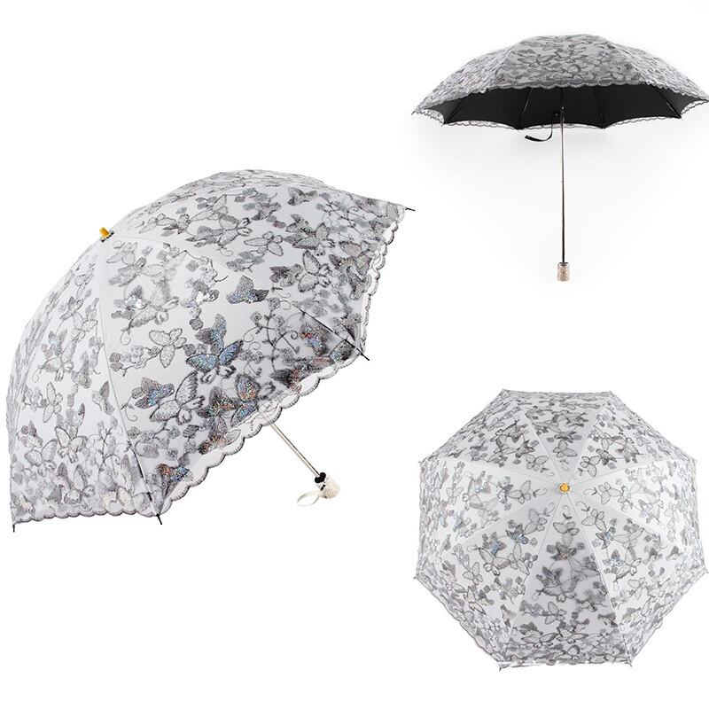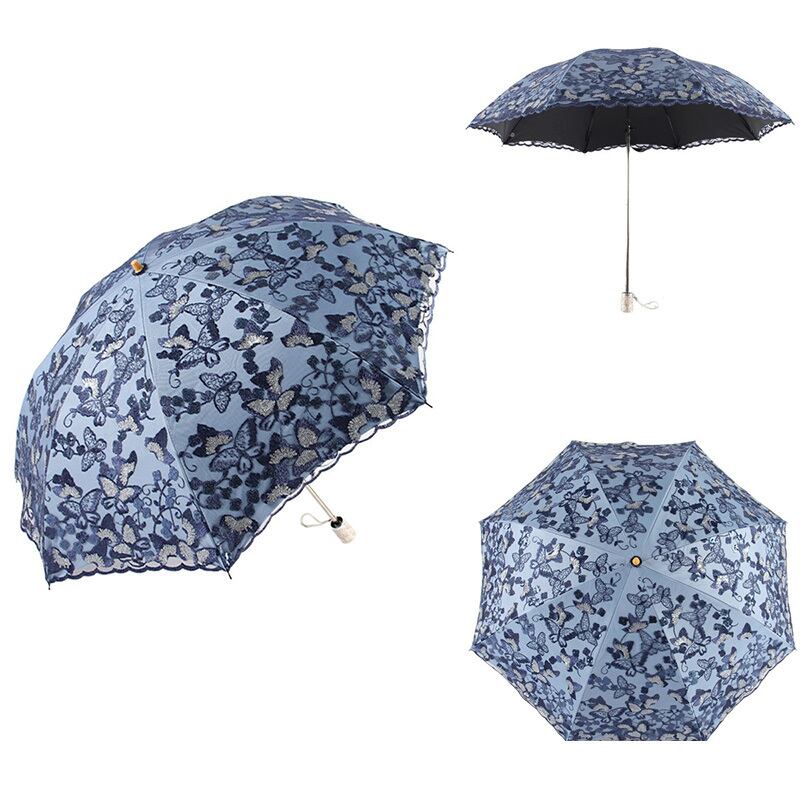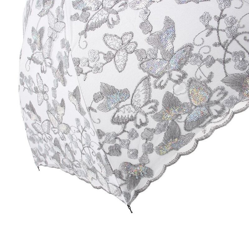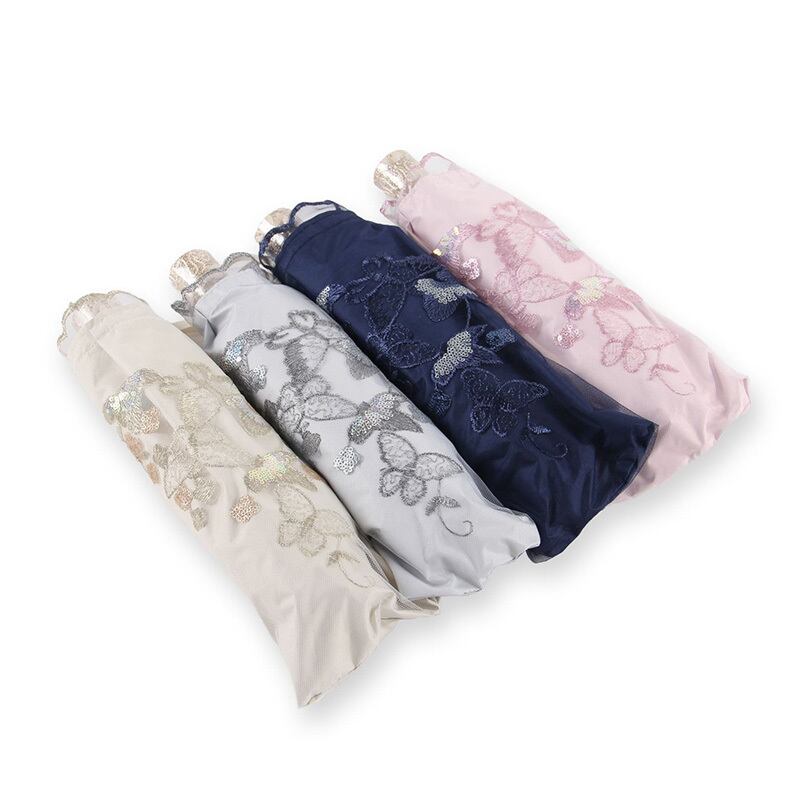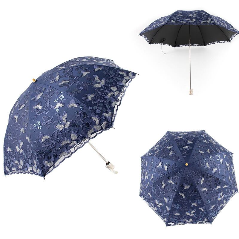 日傘 二つ折り 折りたたみ傘 蝶々柄 バタフライ 蝶 レース 上質 UVカット UV対策 日焼け対策 防止 刺繍 可愛い 簡単開閉 手動 8本骨 耐強風 台風 紫外線対策 上品