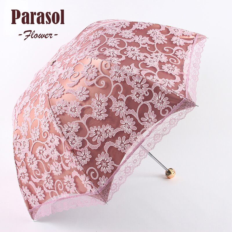 日傘、二つ折り、折りたたみ傘、花柄、刺繍、レース、上質、UVカット、日焼け対策、防止、耐強風、台風、可愛い、簡単開閉、手動、上品、ファッションアイテム