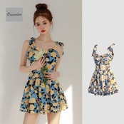 水着、ワンピース、フリル、ギャザー、お花柄、韓国風、体型カバー、背中見せ、可愛い、大人女子、プール、海、夏、映え、ファッションアイテム