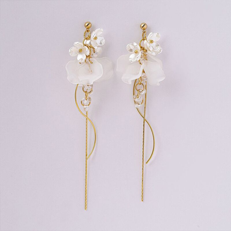 上品さと可愛らしさが見事に調和した、フラワータッセルピアスイヤリング!お花モチーフのデザインは、華やかさとシンプルさを兼ね備え、どんなスタイルにもマッチします。大きめのフラワータッセルとチェーンが耳元を華やかに演出し、日常使いから特別な日まで、幅広いシーンで活躍するアイテムです。選べる2タイプのデザインで、あなた好みのスタイルを楽しめます!