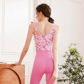 上下2点セット、ヨガウェア、お花柄、ホットヨガ、フィットネス、リボンデザイン、エクササイズ、ジョギング、動きやすい、華やか、快適