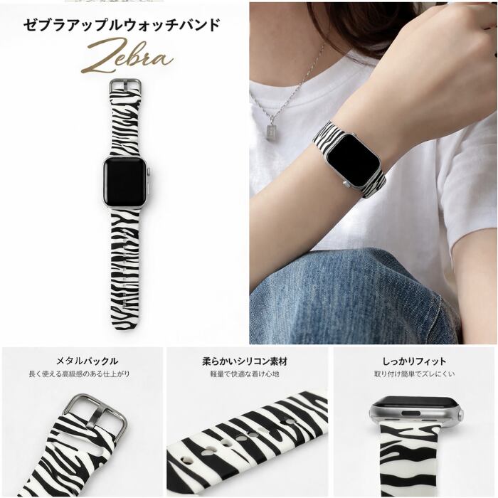 apple watch バンド ゼブラ シリコン ベルト アップルウォッチ モノトーン 全シリーズ対応 38 40 41 42 44 45 46 49 mm レディース メンズ おしゃれ アニマル柄