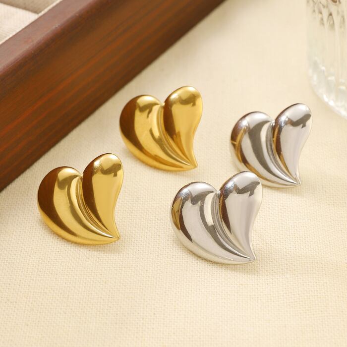 ハートピアス レディース キラキラ ゴールド シルバー ぷっくり 大ぶり アシンメトリー 韓国風 シンプル 上品 高見え