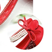 お呼ばれ パーティー 赤 銀 スパンコール パール 歩きやすい 履きやすい お姫様 リボン マジックテープ