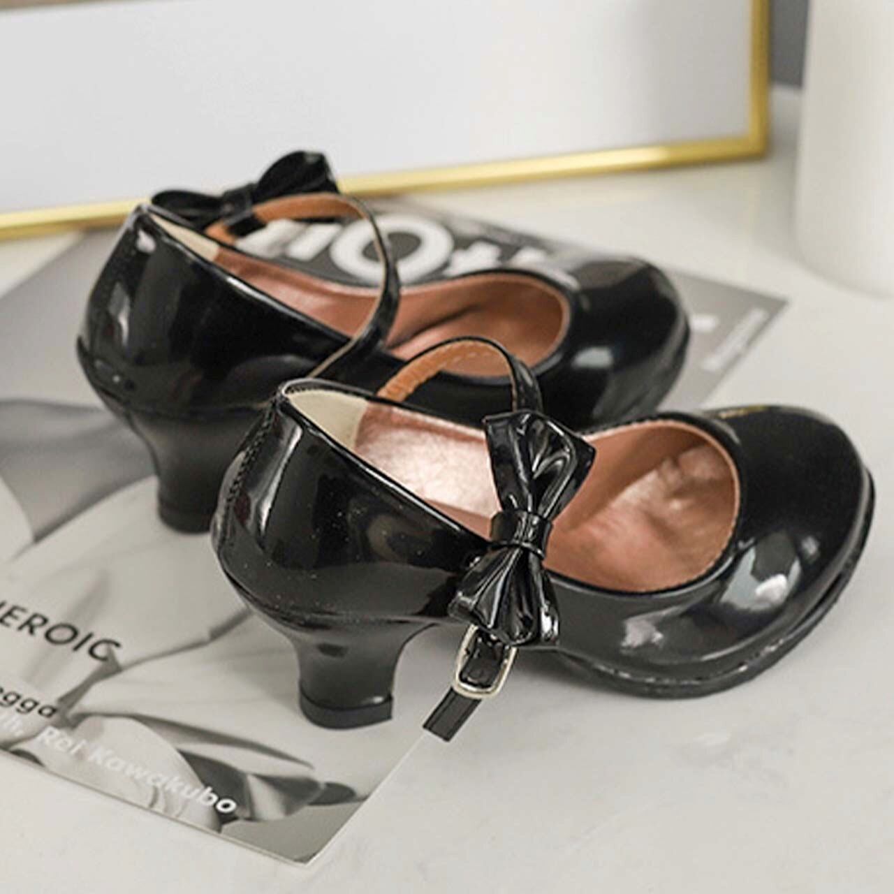 子供靴 エナメル リボン ヒール パンプス