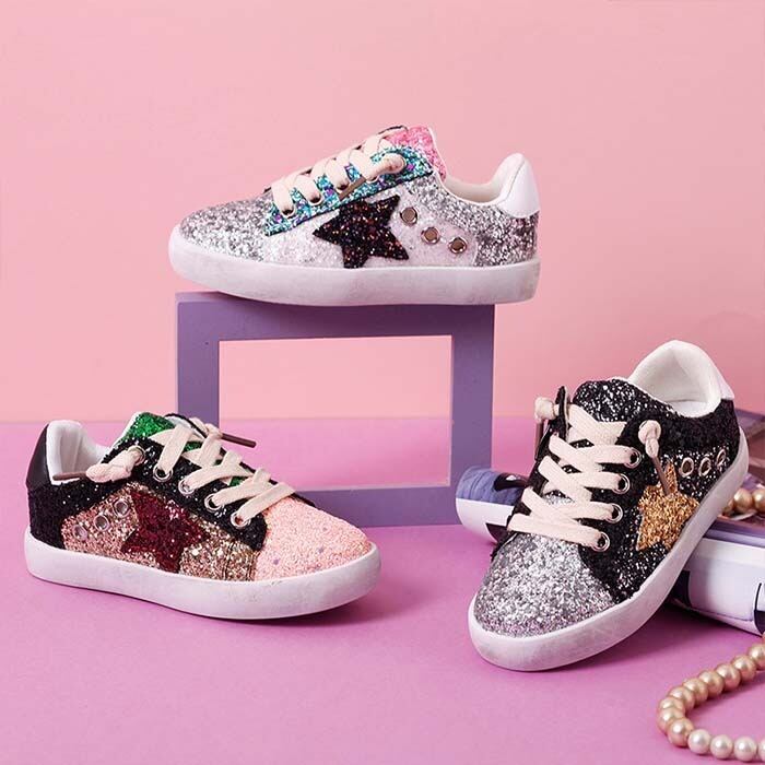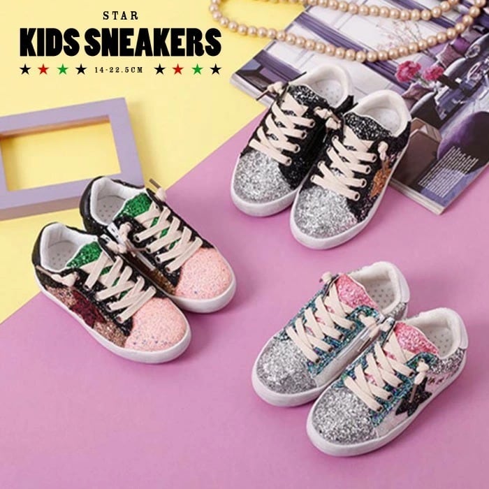 キッズ スニーカー 靴 ラメ キラキラ 星 14cm-22cm