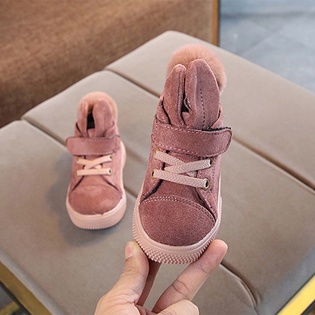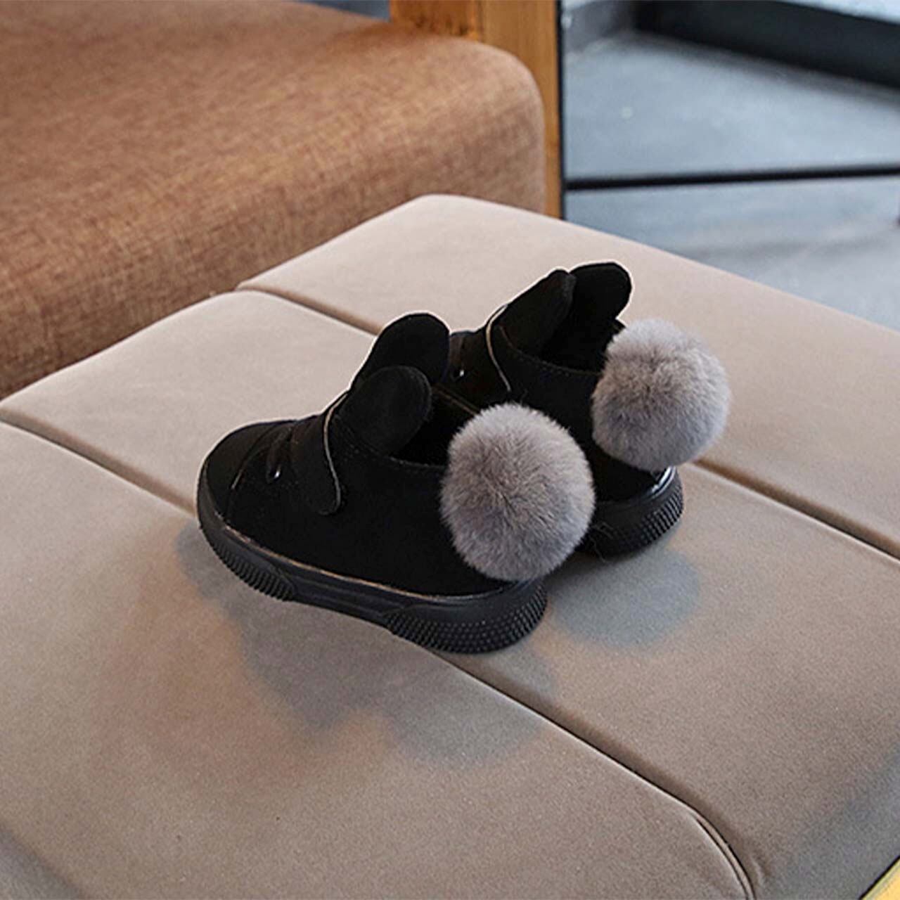 ベビー キッズ スニーカー シューズ 靴 マジックテープ 靴紐 うさぎ 尻尾 ファー ふさふさ モコモコ 暖かい 可愛い 冬 秋 流行り トレンド お洒落 動物 アニマル ぽんぽん