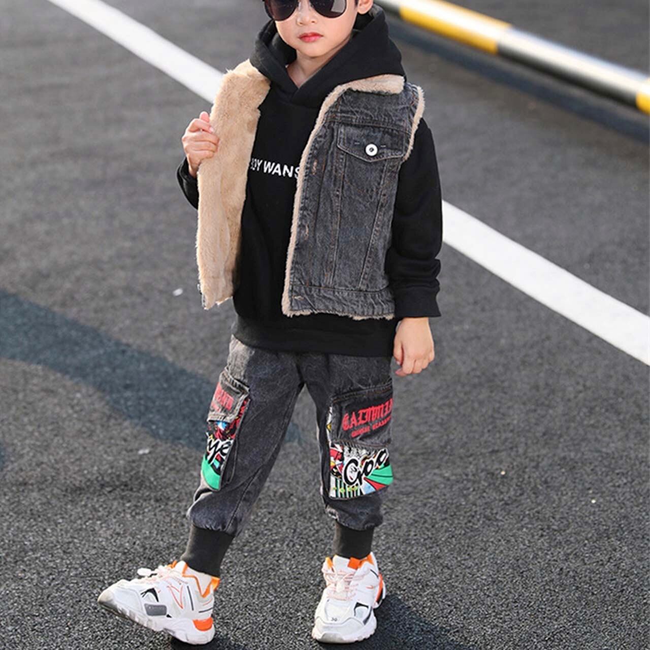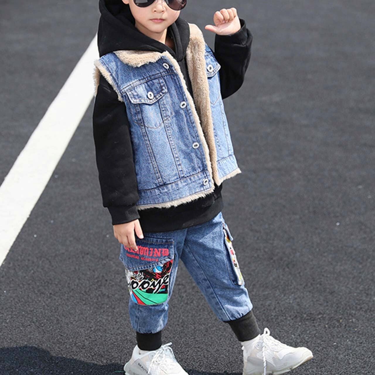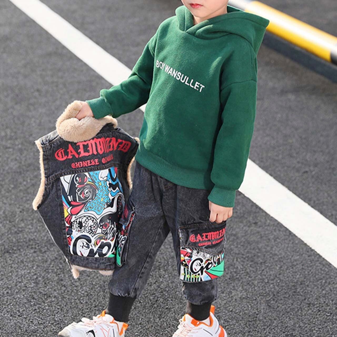 男の子 ジュニア キッズ 小学生 中学生 デニム ベスト トレーナー ブラック グリーン
