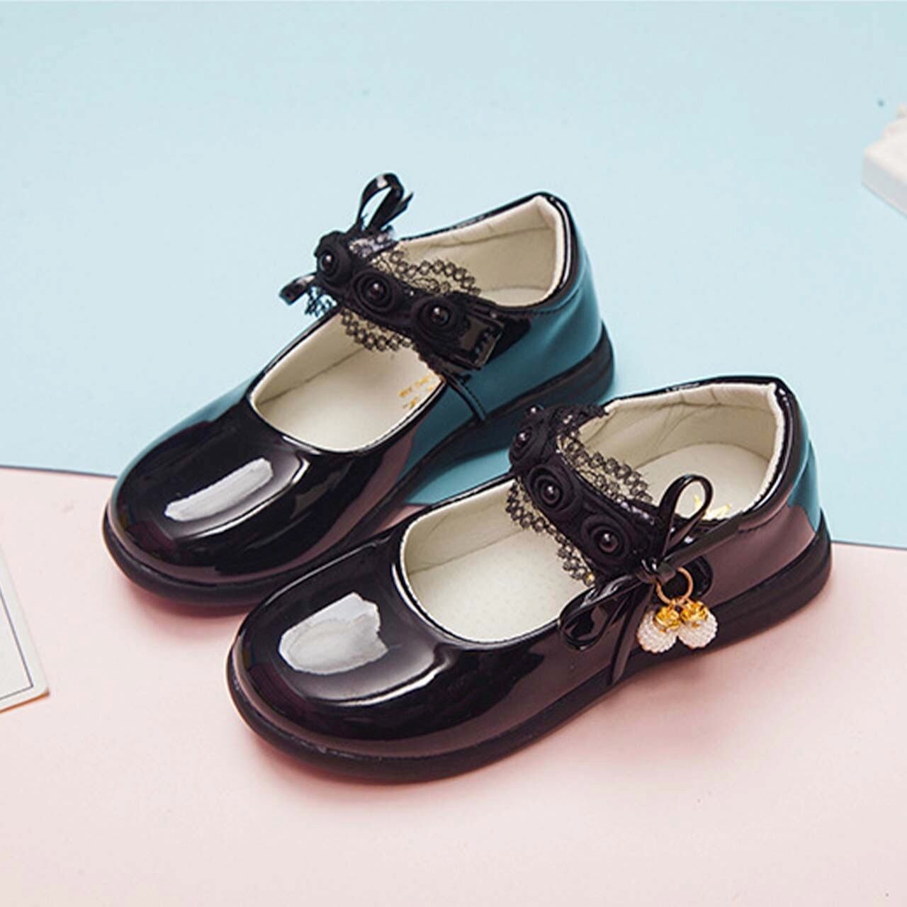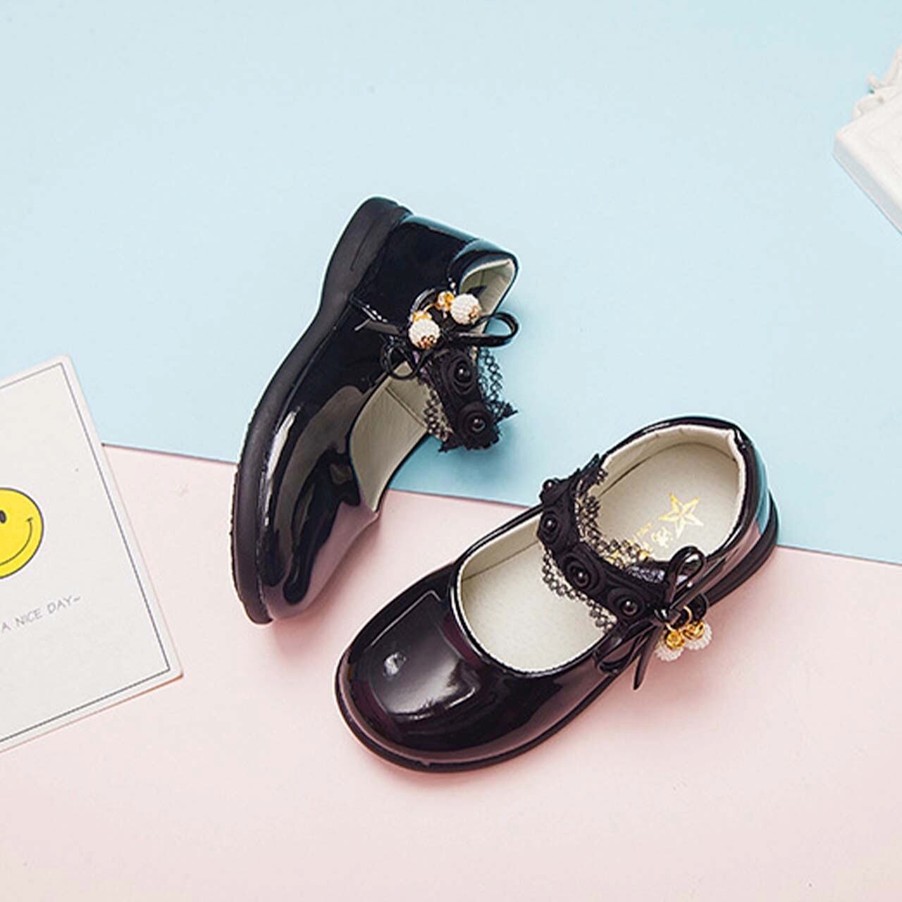 キッズ ジュニア 小学生 幼児 女の子 女子 お呼ばれ エナメル シューズ ストラップ 薔薇 バラ リボン キラキラ
