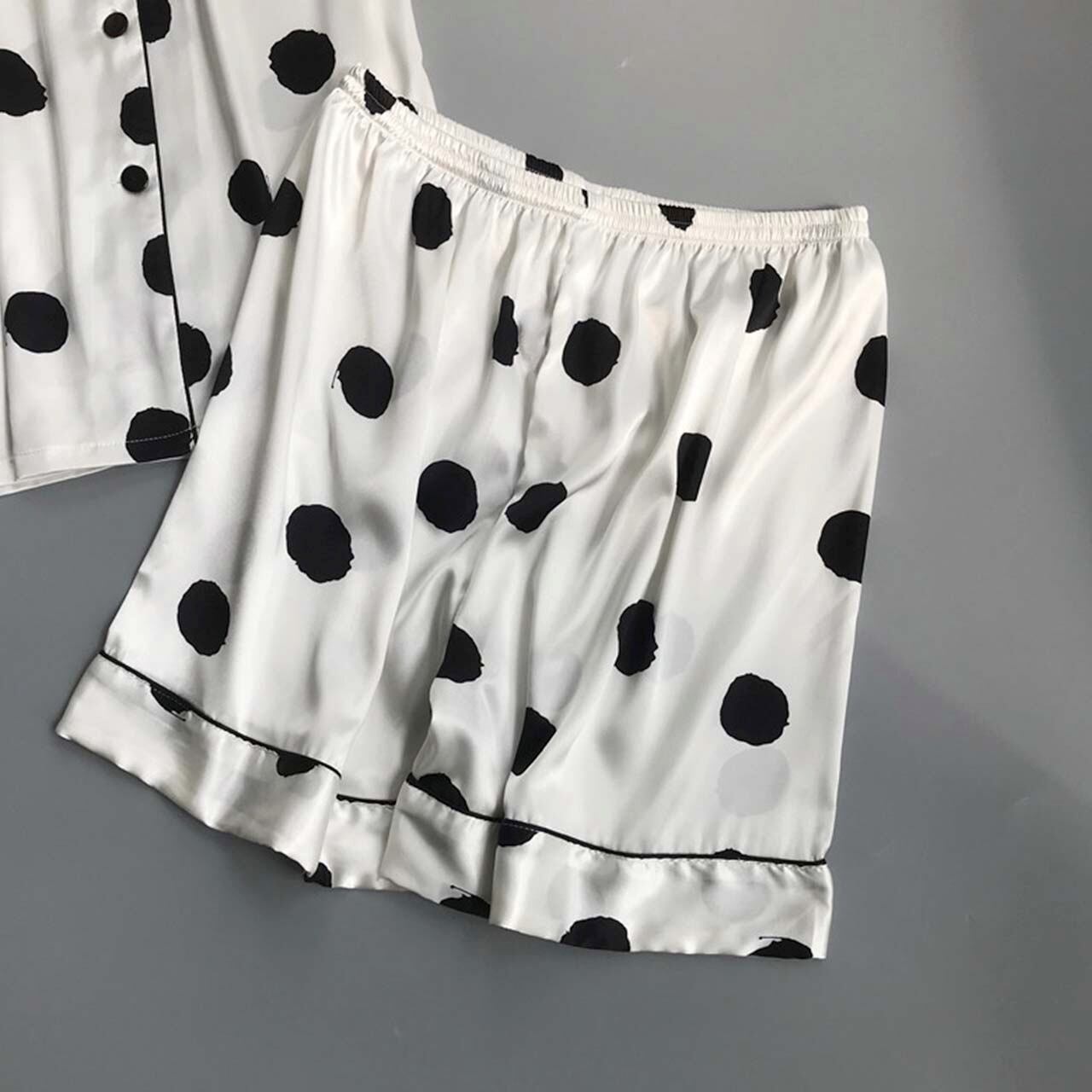 水玉 ルームウエア 人工シルク ツルツル サラサラ お洒落 可愛い
