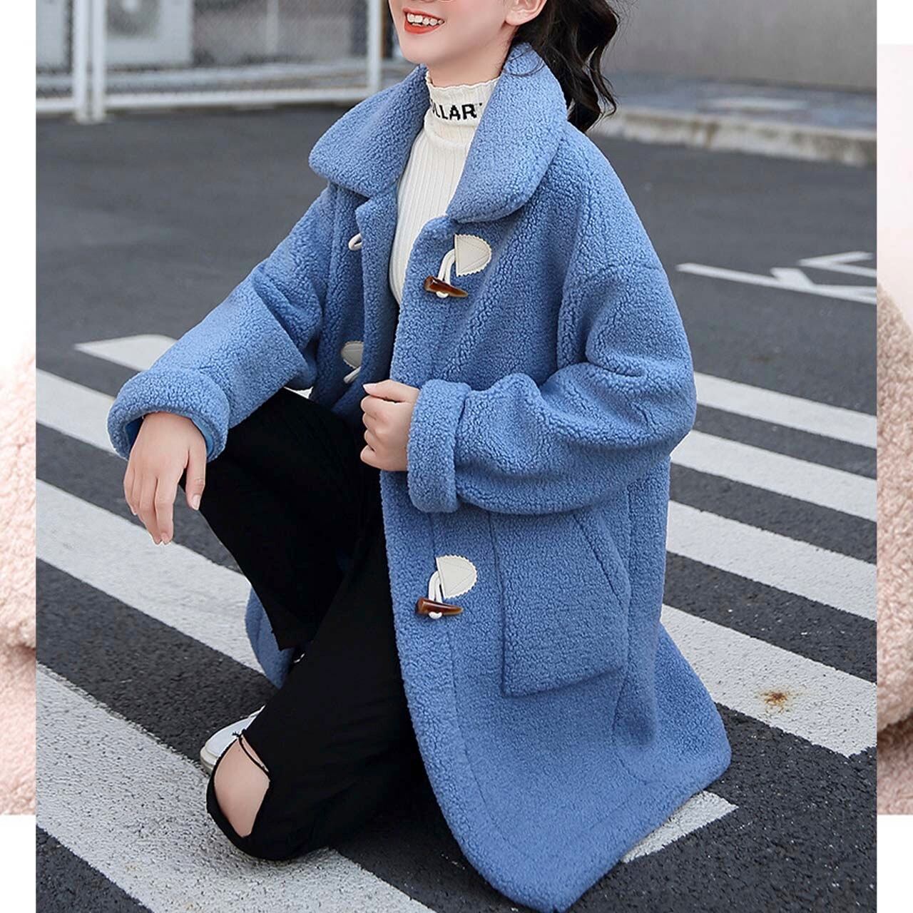 ジュニア キッズ 子供服 小学生 女子 コート アウター ダッフル エコファー ボア モコモコ ふわふわ 可愛い お洒落 150cm 160cm ピンク 青 茶色 ベージュ ステンカラー