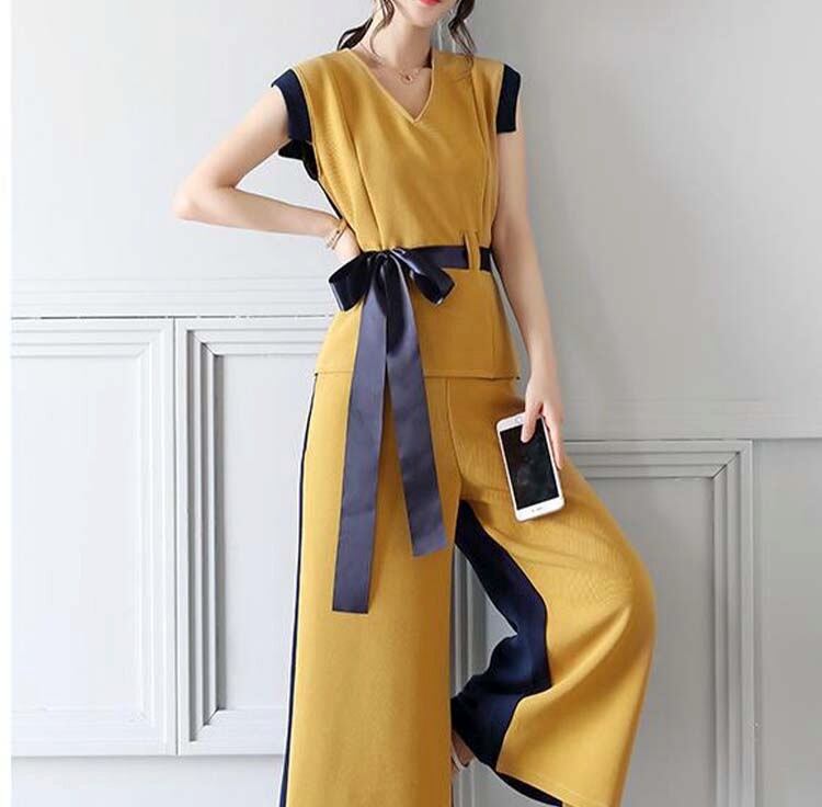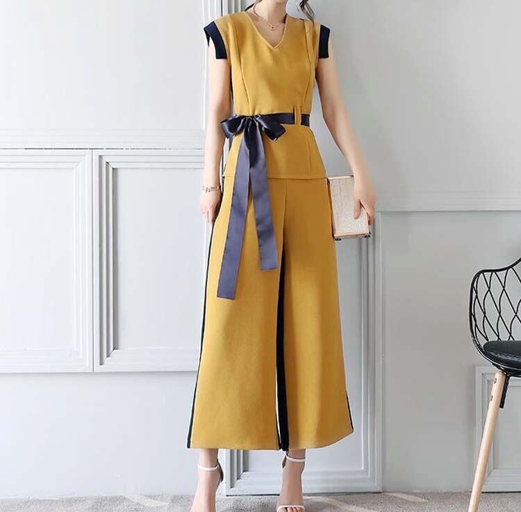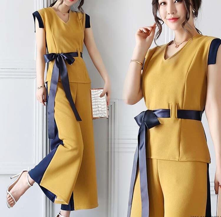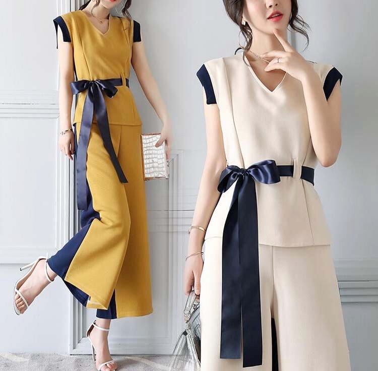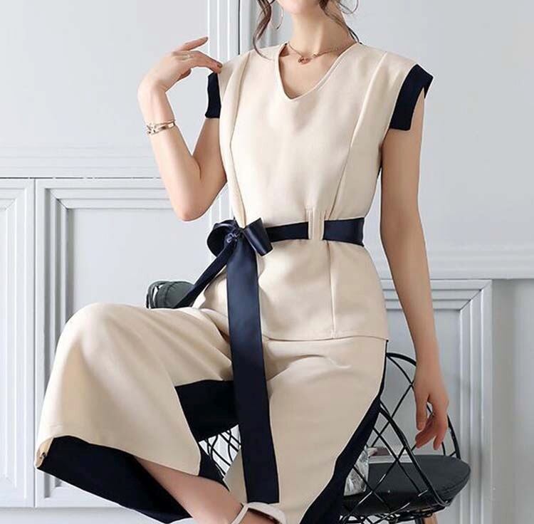 【2set】ウエストリボン 上品なノースリーブセットアップ