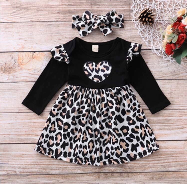 キッズ ベビー 幼児 園児 ジュニア 女の子 女児 レオパード フレアスカート 春 秋 ドレス 髪飾り オシャレ 豹柄