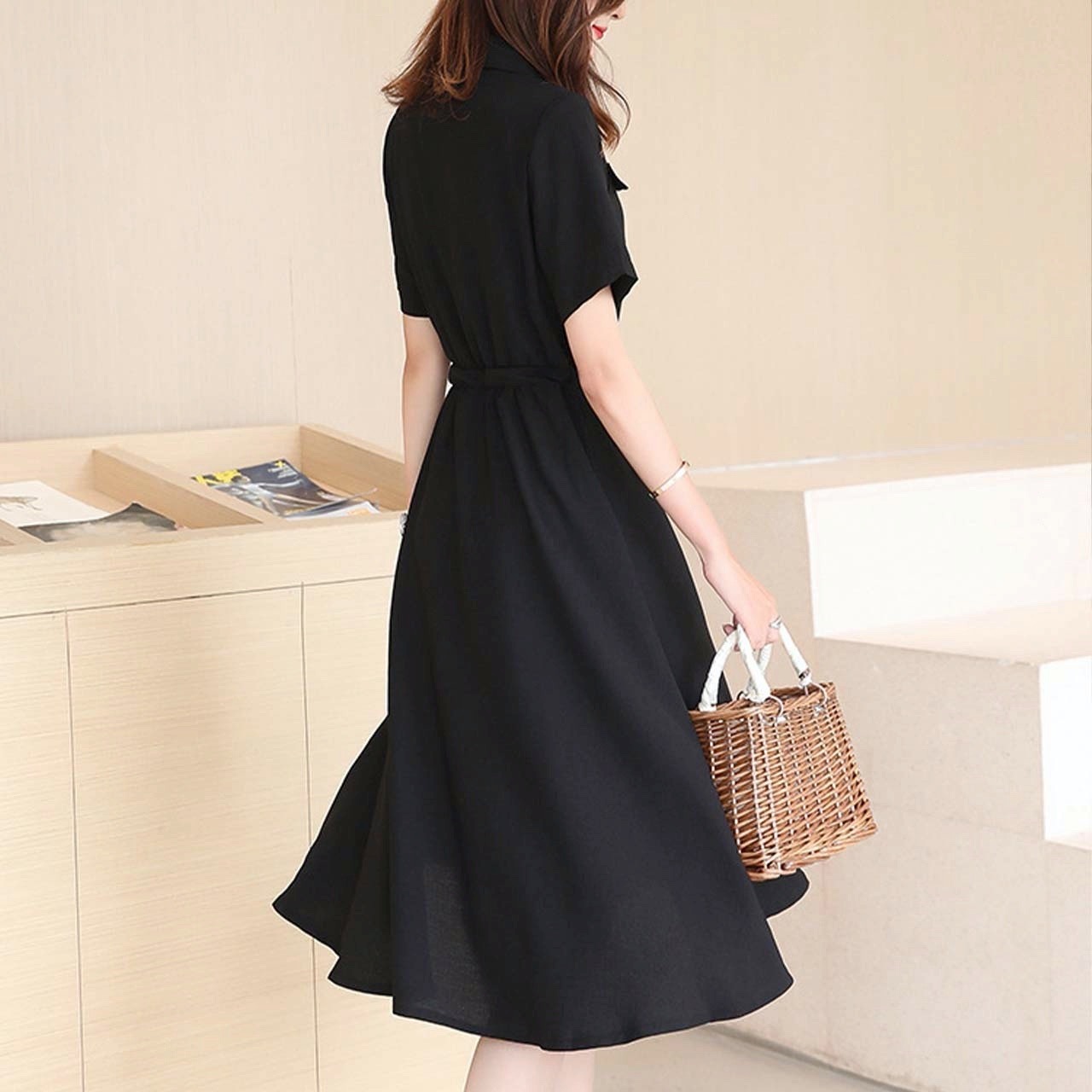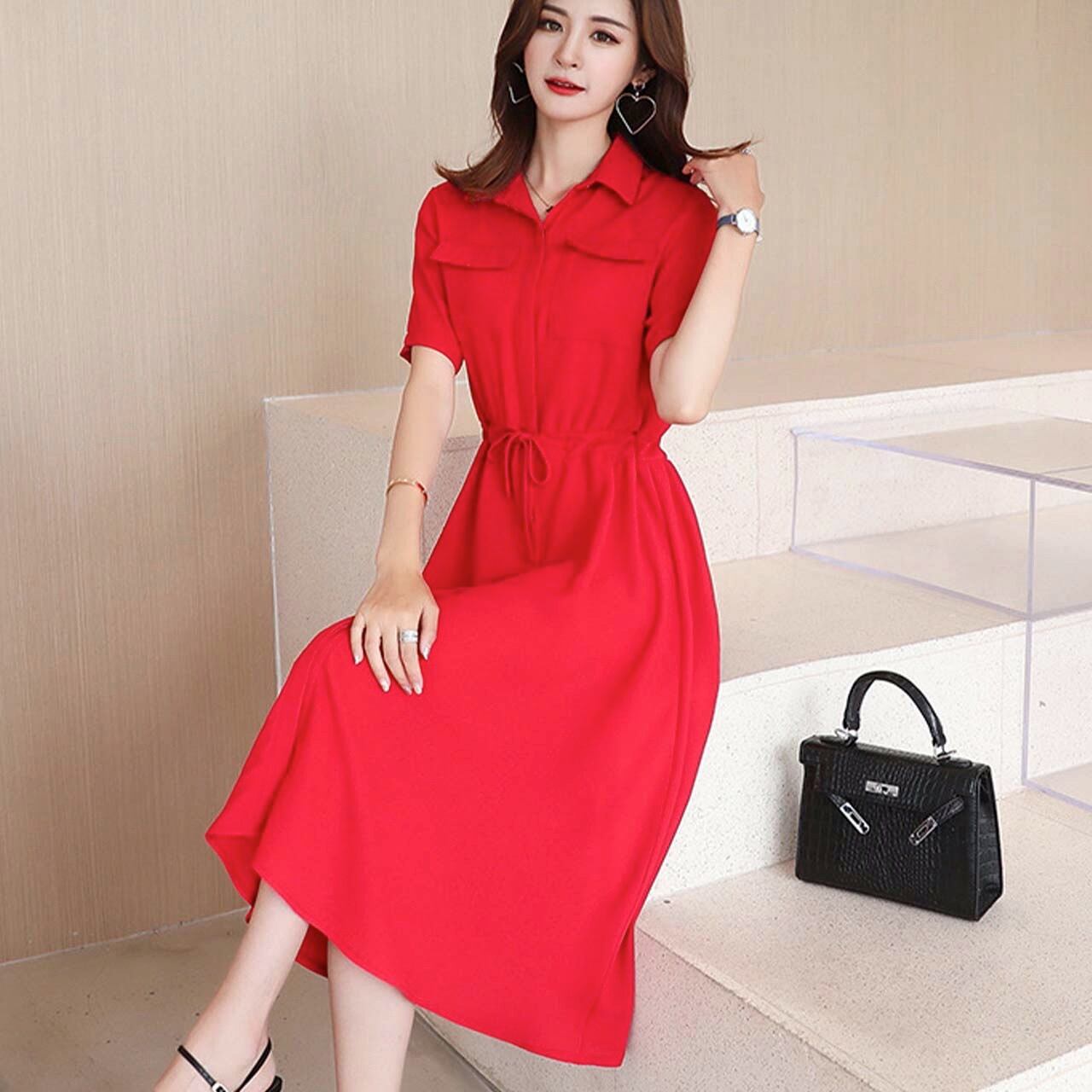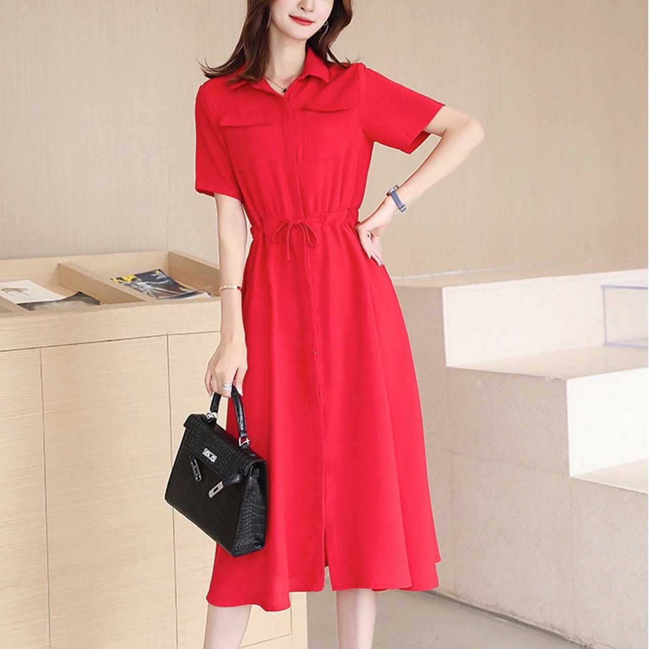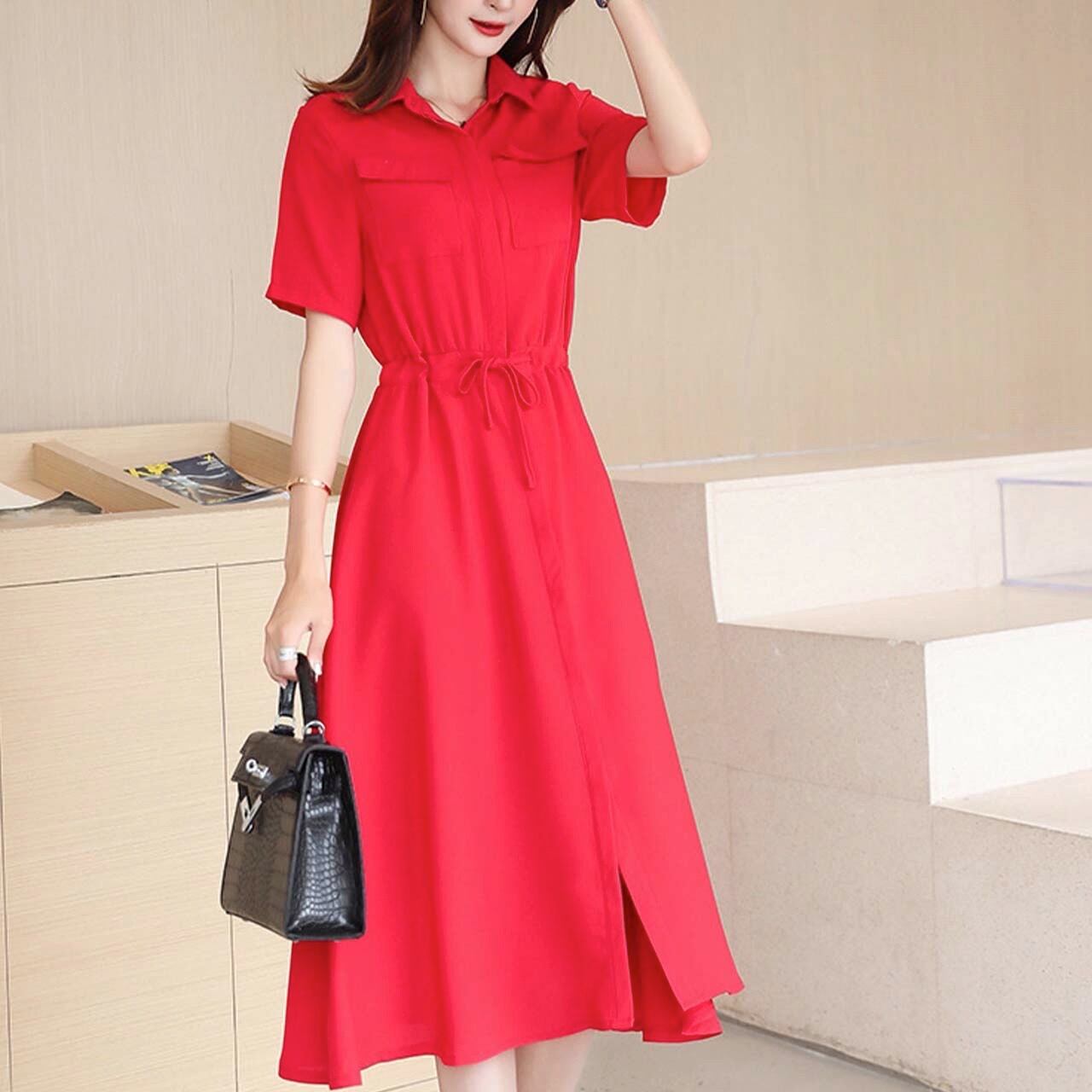 ワンピース シャツ 半袖 お洒落 可愛い ミディ丈 ひざ下丈
