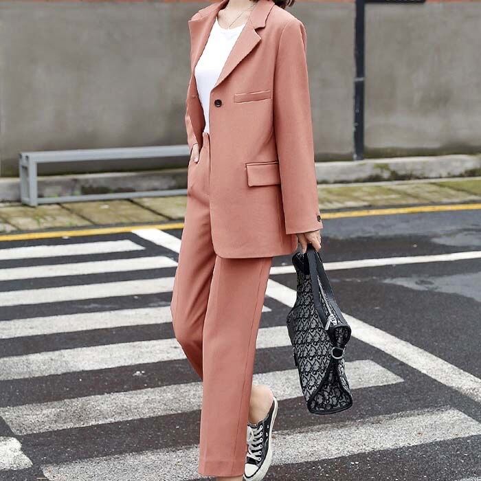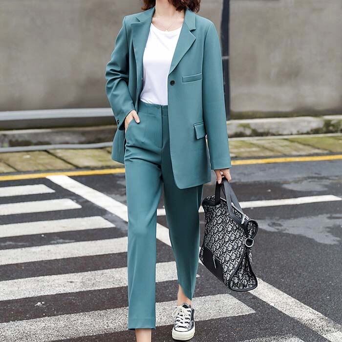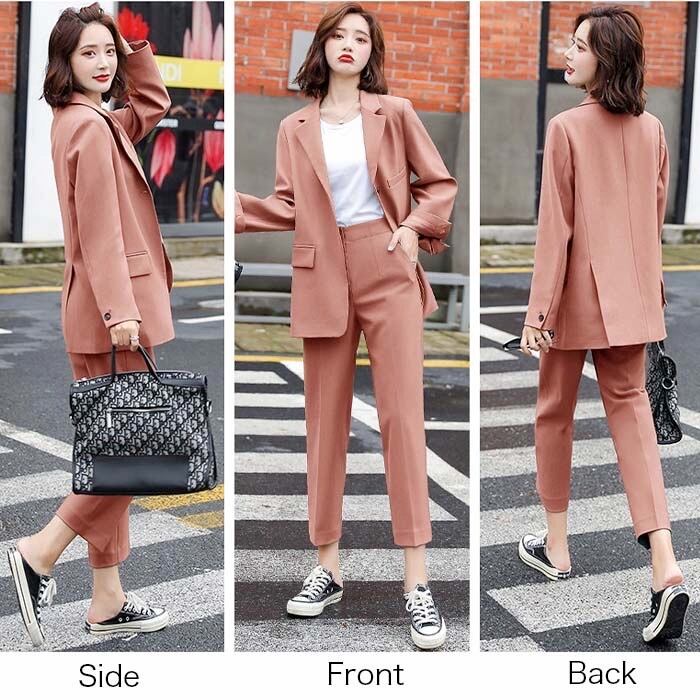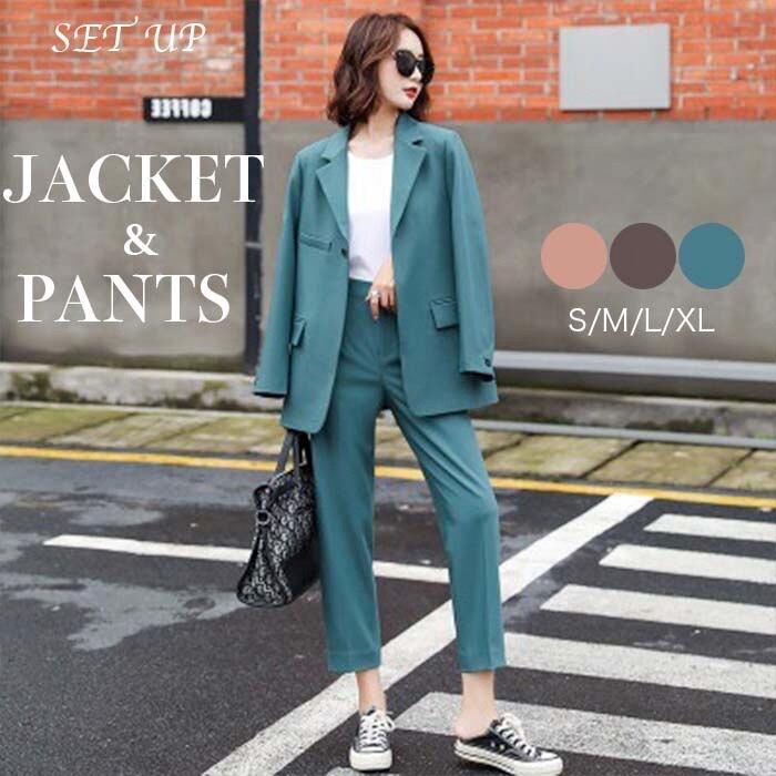 レディース ファッション ジャケット パンツ テーラード アウター ボトムス スラックス スーツ 上下2点セット お洒落 可愛い デート お出かけ 旅行 買い物 散歩 流行り トレンド ロングパンツ