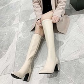 レディース 女性 ファッション シューズ 靴 ブーツ ロングブーツ ジョッキーブーツ ニーハイブーツ 流行り トレンド ギャル 可愛い 女の子 女子 お洒落 シンプル 上品 8cm ヒール 太めヒール チャンキーヒール