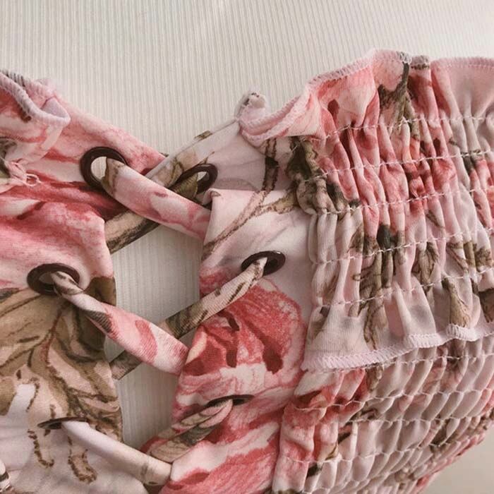 水着 可愛い レディース セクシー ビキニ オフショルダー レースアップ 編み上げ お花柄 フラワー お洒落 大人 ノンワイヤー パッド付き フリフリ フリル 夏 海 プール 映え ギャザー リボン 女性 トレンド 流行り 海外 旅行 マリン スポーツ 海水浴 キュート ラブリー ガーリー