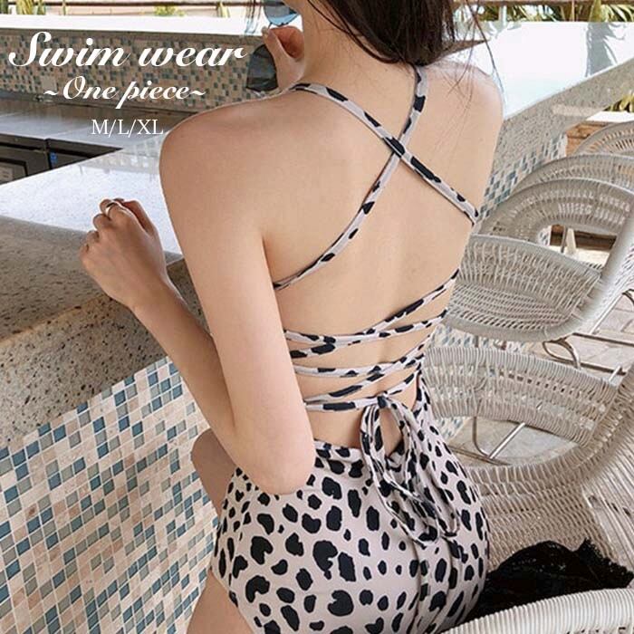 モノキニ 水着 ダルメシアン カウ 柄 可愛い レディース ワンピース レースアップ ホルターネック 編み上げ ストラップ 多種多様 2way 3way セクシー オープンバック バックシャン お洒落 背中開き 体型カバー ノンワイヤー パッド付き 夏 海 プール 映え ギャザー リボン 女性 トレンド 流行り 海外 旅行 マリン スポーツ 海水浴 エレガント