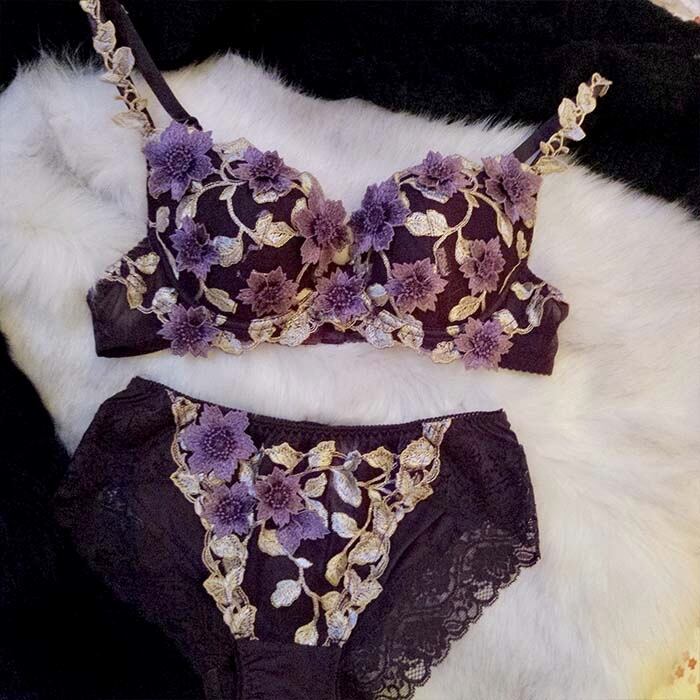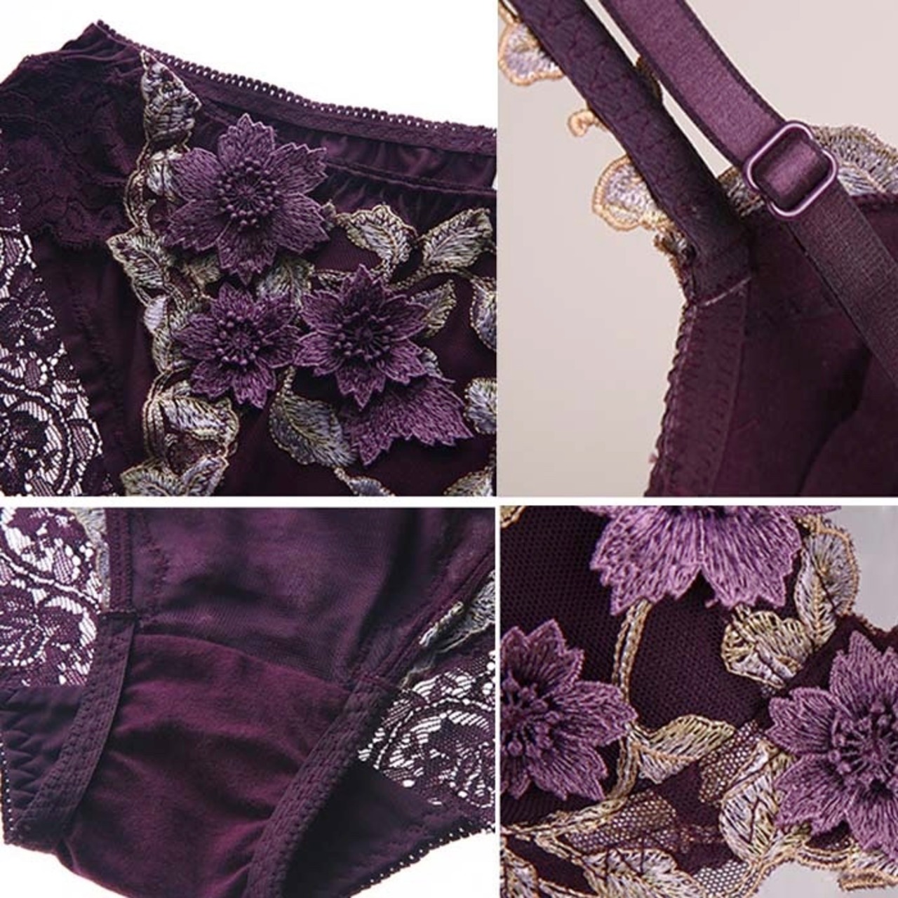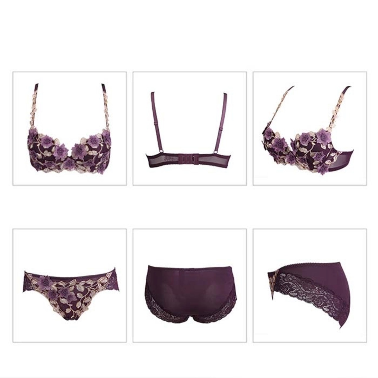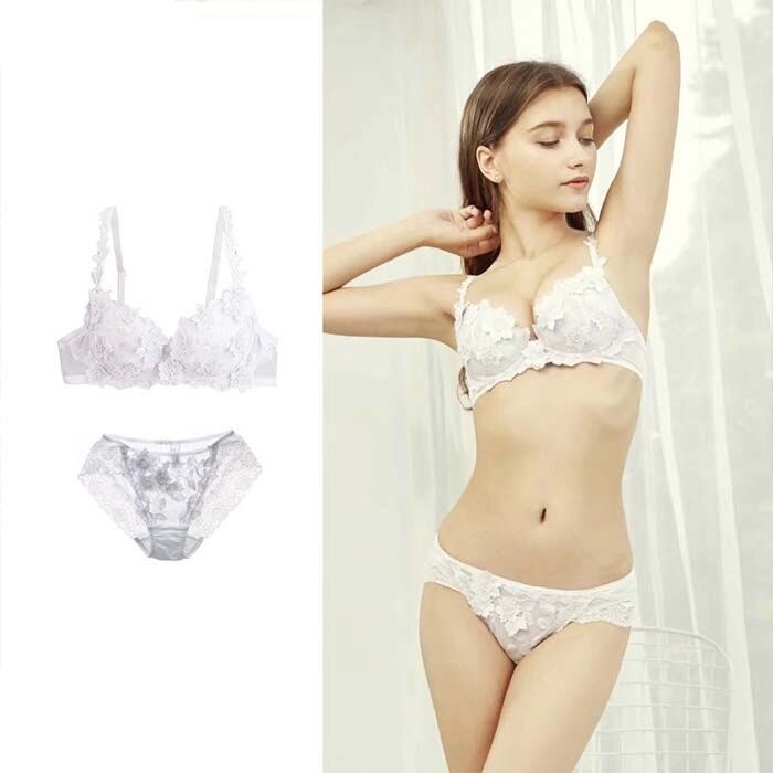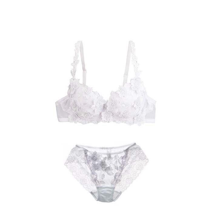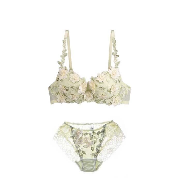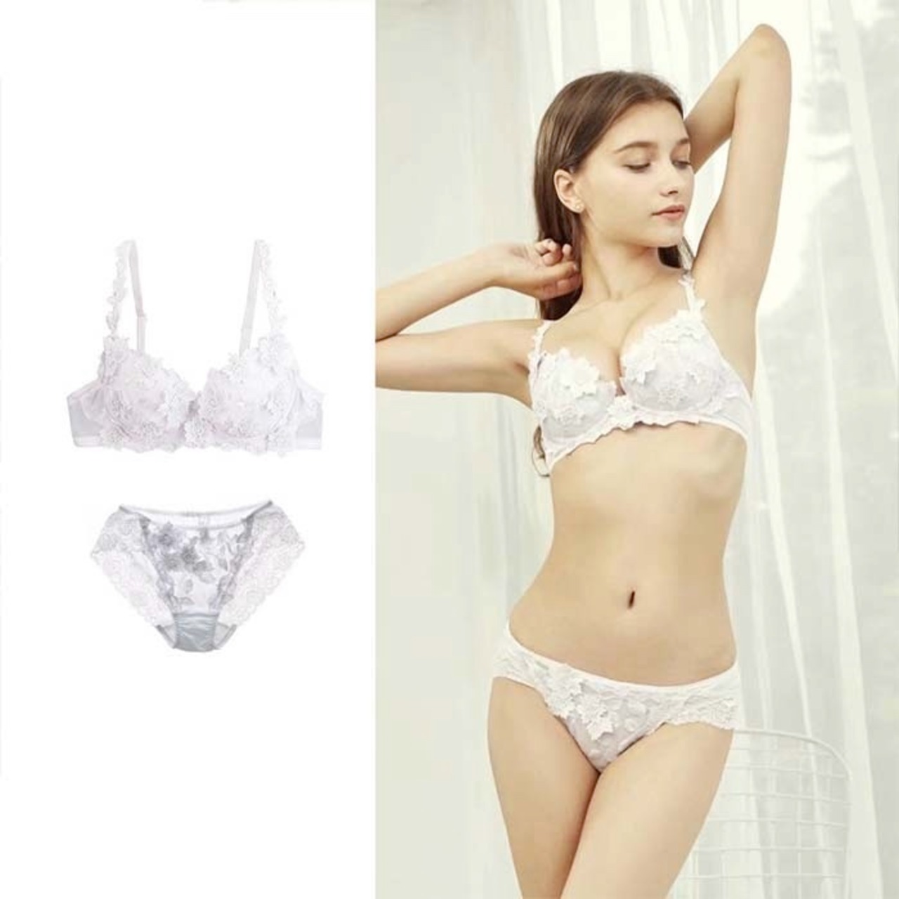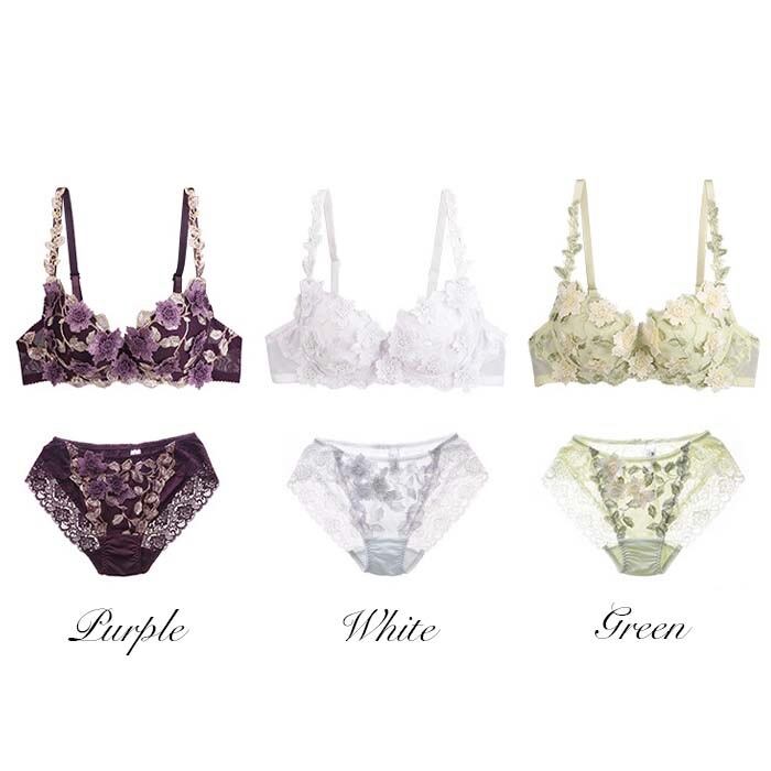 レディース 下着 ランジェリー 可愛い お洒落 盛れる 谷間 寄せ メイク Aカップ Bカップ Cカップ Dカップ 胸 バストアップ リボン 3/4カップ 1/2カップ パッド付き 刺繍 お花柄 上下セット 総レース セクシー 上質 高級感 痛くない 肌触り良好 ブラ ショーツセット レース