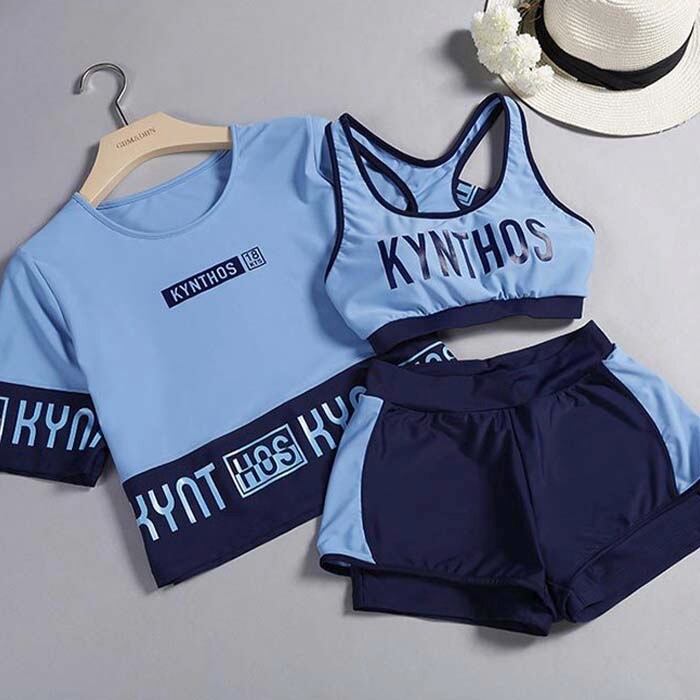 3点セット 水着 レディース スポーティ スポーツ 体型カバー 上下セット Tシャツ タンキニ パッド お洒落 可愛い