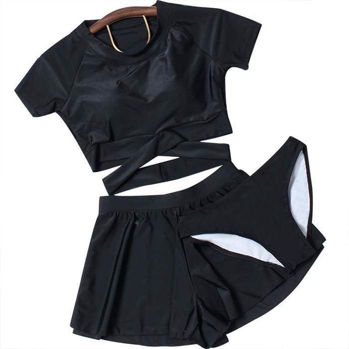水着 3点セット 半袖トップス ショートパンツ ビキニパンツ ビキニ 体型カバー バックシャン レディース セクシー 黒 ブラック MLXL