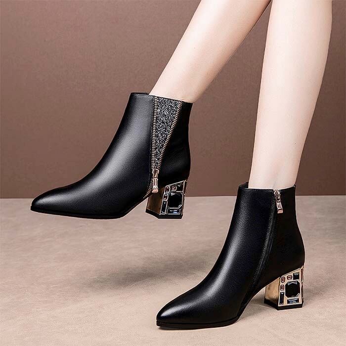 ショートブーツ 高級素材 本革 牛革 レザー サイドジップブーツ ストーンヒール チャンキーヒール 太めヒール 上品 キラキララメ ジップアップ ジッパー シューズ ヒール バックシャン ブーツ ショート ミディアム ミドル スパンコール エレガント フェミニン お洒落 靴 可愛い 流行り セレブ トレンド 綺麗 コーデ デート エレガンス サイドジッパー 春 秋 冬