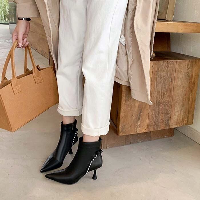 ショートブーツ 砂時計型ヒール くびれヒール ルイヒール 高級素材 本革 牛革 レザー ワンポイントバックリボン パール パールライン サイドジップブーツ 装飾 安定感 歩きやすい 太めヒール 上品 ジップアップ ジッパー シューズ ヒール バックシャン ブーツ ショート ミディアム ミドル スパンコール エレガント フェミニン お洒落 靴 可愛い 流行り セレブ トレンド 綺麗 コーデ デート エレガンス サイドジッパー 春 秋 冬