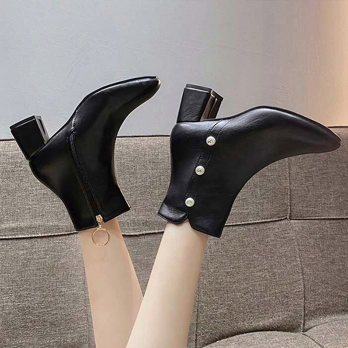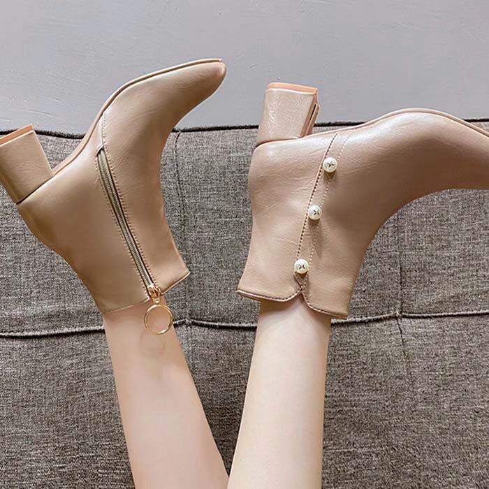 パール スターパール ショートブーツ ネジ穴デザイン 星 リボン 皮革 サイドジップブーツ キラキラ ジップアップ サイドジッパー ジッパー シューズ ヒール 太めヒール チャンキーヒール 映え ブーツ ショート ミディアム ミドル 上品 エレガント フェミニン お洒落 靴 可愛い 流行り トレンド 綺麗 革靴 コーデ デート エレガンス 春 秋 冬 シーズン
