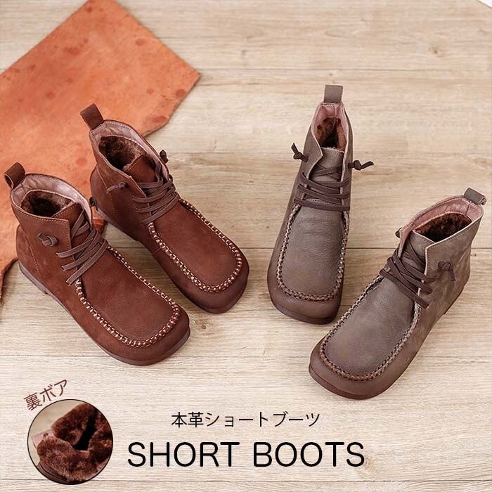 ショートブーツ 本革 牛革 高級素材 レザー ムートンブーツ 大人 ブーツ レディース ファッション お洒落 靴 トレンド 流行り デート カジュアルコーデ 歩きやすい 痛くない