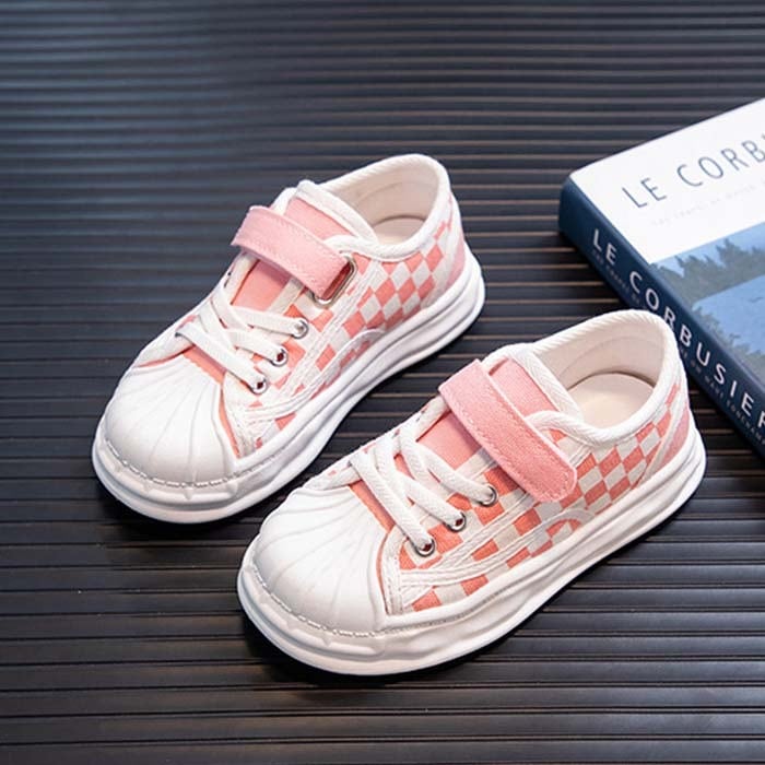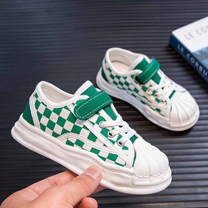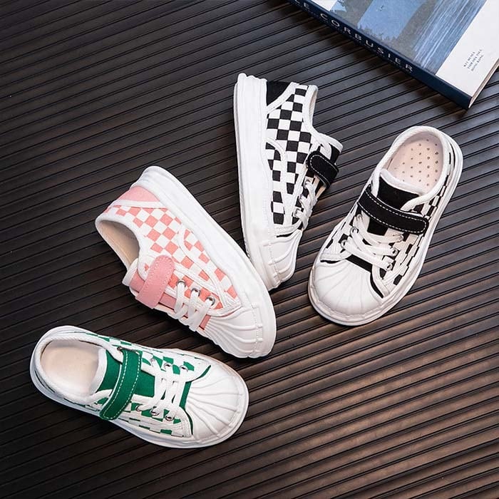 キッズスニーカー チェック柄スニーカー 子供靴 可愛い お洒落 男の子 女の子 靴 ジュニア サイズ豊富 16.5cm-22cm