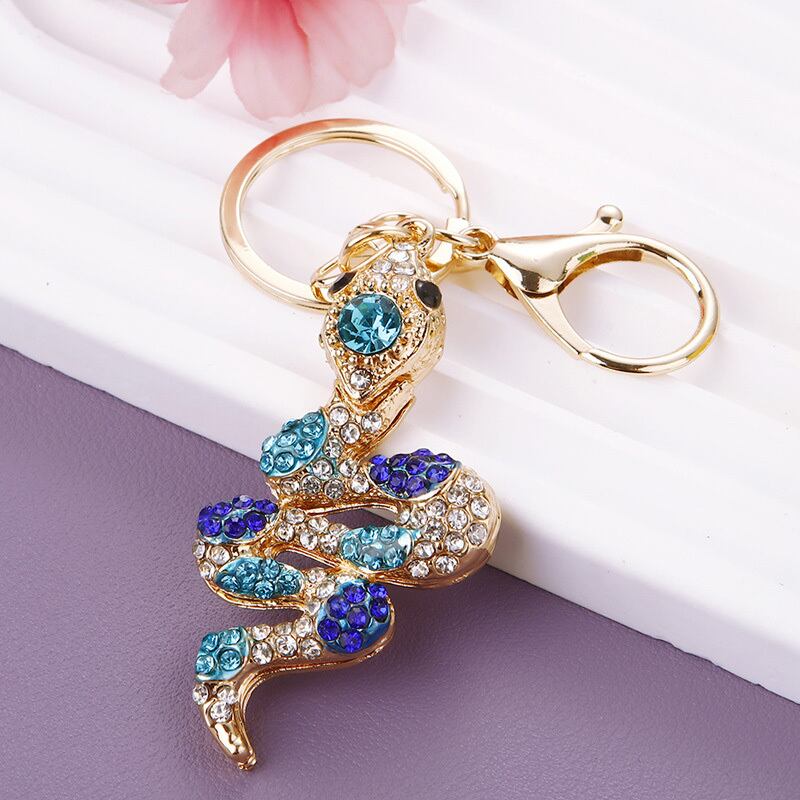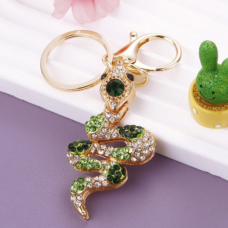 ヘビモチーフキーホルダー、蛇、スネーク、チャーム、キラキラ、ゴージャス、エレガント、上品、可愛い、お洒落、ラインストーン、装飾、プレゼント、ファッション小物